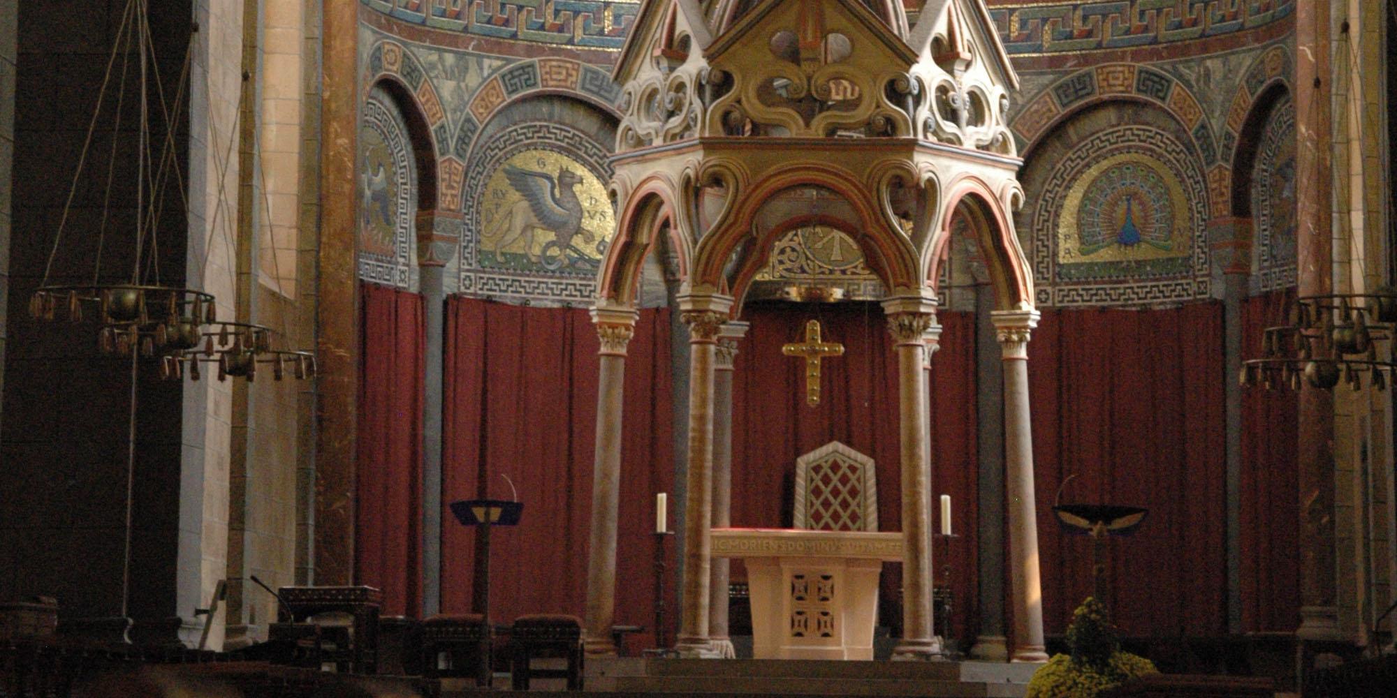 Genau den hatte der Monarch 1897 angesichts des leeren Kirchenraumes gestiftet. „Der Altar mit seinem gewaltigen, von Baurat Max Spitta entworfenen Baldachin zählt zu den Hauptwerken der wilhelminischen Kunst. Besonders hervorgehoben wird die elektrische Beleuchtung.“